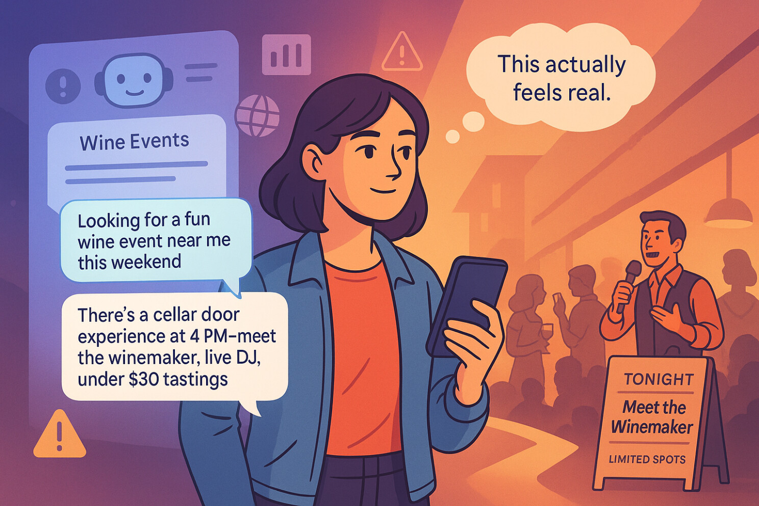 Gen Zers are reportedly gravitating more towards brands that use online engagement to drive offline interaction (Moore, 2025b). According to Forbes, the future of brand connection is shifting from the territory of digital influencers to event hosts (Moore, 2025a). For this reason, it’s imperative that wine brands audit, adapt, and unify not only their online identity but also their experiential marketing approaches. Consider how your brand might build a robust marketing funnel that increases traffic at cellar doors or other in-real-life (IRL) wine experiences through gen AI.