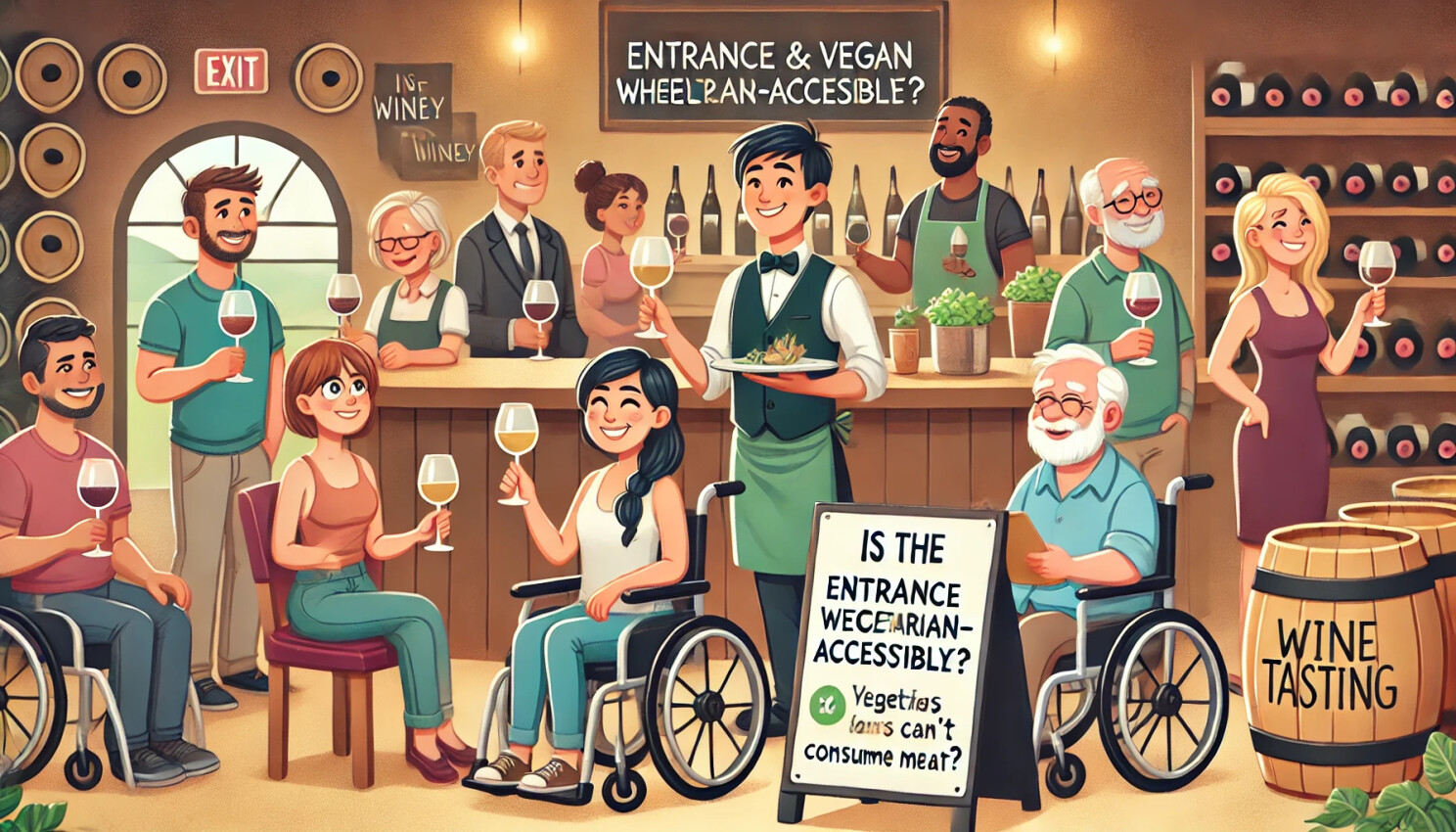These efforts can start by asking, “Is the establishment’s entrance wheelchair-accessible?” or “Do I have vegetarian or vegan pairings for those who can’t consume meat?”