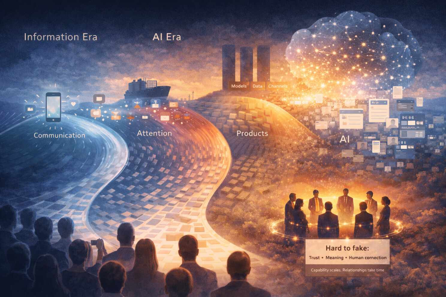 We’re moving from a manufacturing society, through an information society, and now into an AI society. And when that shift happens, everything changes for anyone whose competitive advantage used to be built on making and selling physical products.