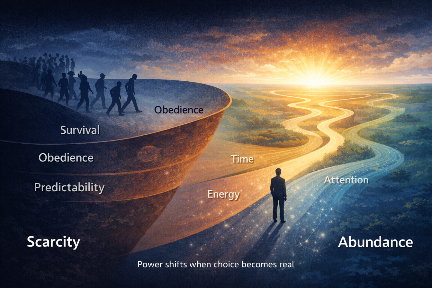 Kings, churches, states, later corporations. Control of land, knowledge, money, access. Scarcity narratives reinforced obedience: “There isn’t enough.” “You need us.” “This is the order.”