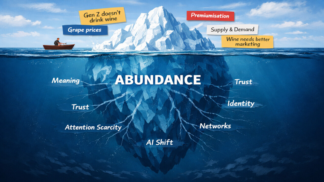 This is where the wine industry keeps misreading the room. We keep talking as if the game is still supply and demand: plant less, make less, raise prices, wait for balance to return.